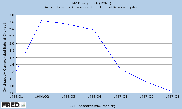 The money supplied slowed before the October 1987 crash:
