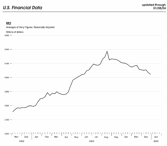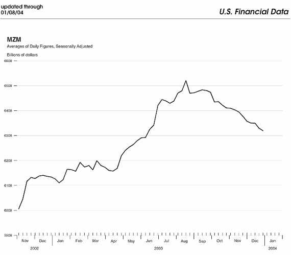 The FED decided to stimulate the economy in 2001 by pumping in new money. Lo and behold, this policy is now backfiring. It has produced such low rates of investment return for savers that they are pulling currency out of the banks. This has created an anomaly: a fall in the money supply, or at least a fall in the various money supply statistics.