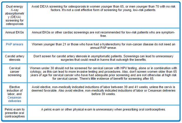 The American Academy of Family Physicians’ (AAFP) Choosing Wisely campaign has identified 15 routine procedures that appear to have little value, and in many cases do more harm than good.8