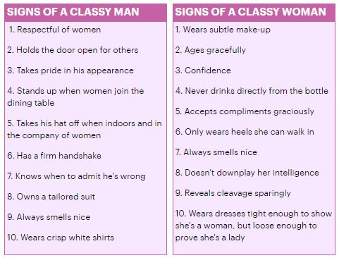 For women, smelling nice, confidence and sensible heels are sure-fire signs of elegance.
