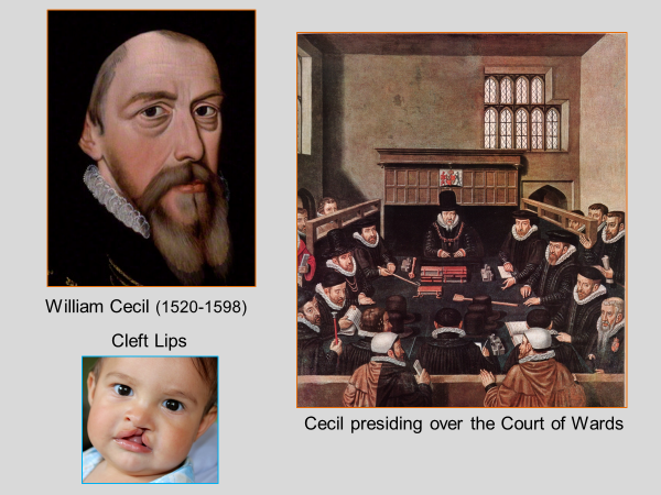 William Cecil was born with a cleft lip, and likely a cleft palate as well. [7] With speech defects children with this deformity often exhibit behavioral inhibition. But some, like Cecil, do the opposite and display aggressive behavior. As observers have noted, a deformity can be an advantage to a statesman, rendering him industrious and bold, and apt to turn the weaknesses and faults of others into opportunities for retribution. He was also Master of the Court of Wards, which managed and controlled the realm’s finances and lucrative wardships.