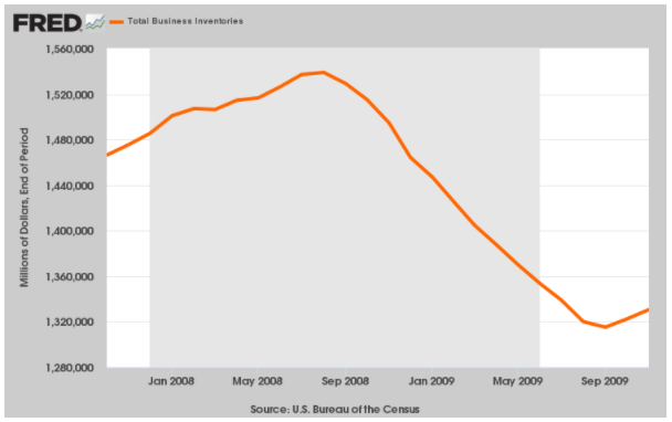 Eventually, $225 billion of that inventory (15%) was liquidated before restocking commenced in November 2009, but the key point is that more than 60% of the destocking occurred during the concentrated period of stock market collapse between September and March. The C-suite was desperately attempting to lighten the load.