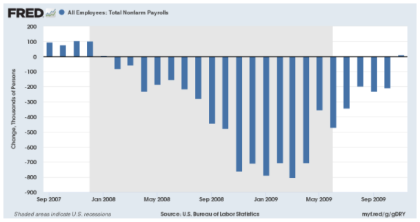 Stated differently, the violently collapsing Greenspan mortgage, credit and Wall Street gambling bubbles triggered four to eight months of macroeconomic freefall that no one saw coming. As late as July, the Fed minutes denied that a significant downturn was even likely in 2008, while the Wall Street stock peddlers were insisting that the goldilocks economy was alive and well.