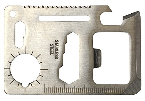 Yes, that is the name of it, made by Ultimate Survival Technologies. You can order this one at Amazon.com or pick it up in a big-box store for $3.00. It has 11 functions: Knife, flathead screwdriver, bottle opener, ruler, hex wrench with 4 positions, direction indicator, 2-position hex wrench, lanyard hold, saw, groove-wrench, and can opener. All of this stuff is on 1 tool, in the size and shape of a credit card and made of stainless steel…real steel, the kind that a magnet sticks to. It comes with a little plastic sheath. I advise keeping the sheath, as it’s pretty sharp and can potentially cut your wallet if you shift around with it. Also, you may want to cut the back panel off describing the functions…with a diagram…put into the pouch along with the card tool to help you until you’re familiar with it. Tuck it in your wallet until you need it.
