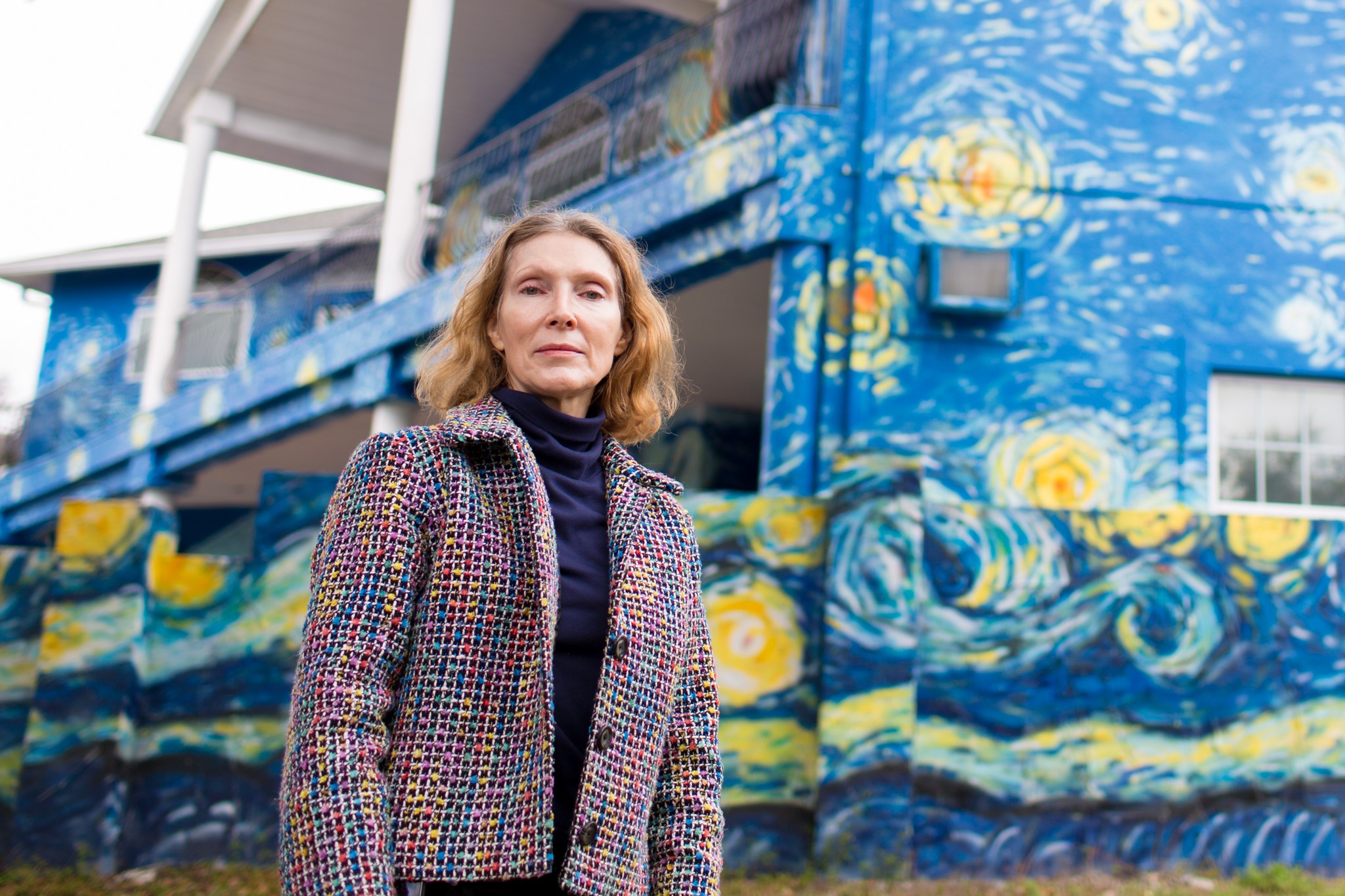 Mt. Dora is a an artsy little hamlet known for its murals and art festivals. A year ago, Nancy and her husband Lubomir decided to paint their house wall in interpretation of Vincent van Gogh’s famous Starry Night painting. They had no HOA, they checked with city code and no issue was raised. Yet after they painted it, they received a city citation claiming the wall art was graffiti—that the wall had to match the color of the house. So the couple decided to paint the whole house to match to avoid any issue.