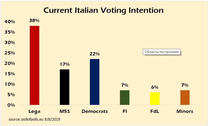 I don’t have any idea of the internal, regional numbers for Italy but if Lega pulls more than 40% in a general election it is likely they will have enough seats to form a majority government without partners. That’s what Salvini is banking on. And he should be confident given he trends in polling and the frustration with M5S, who were the recipients of support out of pure protest.