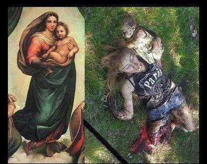 I would like to close with the story of Russian speaking victim in Ukraine of Washington’s regime change operation. It’s the story of the “Gorlovka Madonna”, something the Western Press never covered but I learned about from a comment on The Saker’s site and she is described in this article along with the horrors of yet another war waged by Washington against innocents, waged by the sociopaths that Ms. Webb wrote about. Read this excerpt and don’t think America will be exempt from such intense human suffering if its rulers continue to pursue their agenda of mass murder and attempt to engage Russia and China in military conflict. The victim was very human; that this doesn’t matter to the sociopaths in power isn’t the point. That it matters to those with a conscience, who will get the message out, who will fight for peace is what’s important.