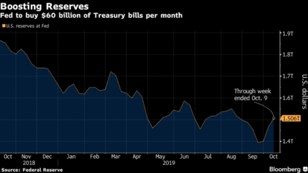 Once again, in anticipation of the reactions to this measure, officials were quick to highlight that “these actions are purely technical measures” and “do not represent a change” in its monetary stance. Dallas Fed President Robert Kaplan insisted that the decision “is not intended to create more accommodation or create more stimulus”. As for Chairman Jerome Powell himself, he went out of his way to stress that the move “in no way” represents a resumption of quantitative easing (QE). Instead, he argued, these asset purchases, that have nothing to do with the ones we saw after the 2008, are meant to ensure there is enough liquidity in the financial system to prevent further spikes in short-term lending markets, like the sudden cash shortages we saw in September that pushed the fed funds rate way out of its target range.