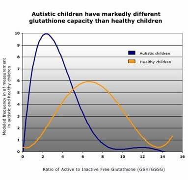 The James study shows that children with regressive autism have consistently elevated levels of oxidative stress as compared to normal healthy children. Individuals with reduced glutathione antioxidant capacity will be under chronic oxidative stress and will be more vulnerable to toxic compounds that act primarily through oxidative damage, including mercury. Thus when we treat for mercury toxicity it is a good idea to include glutathione (probably the best way is with suppositories or IV) selenium, bicarbonates and magnesium[3].
