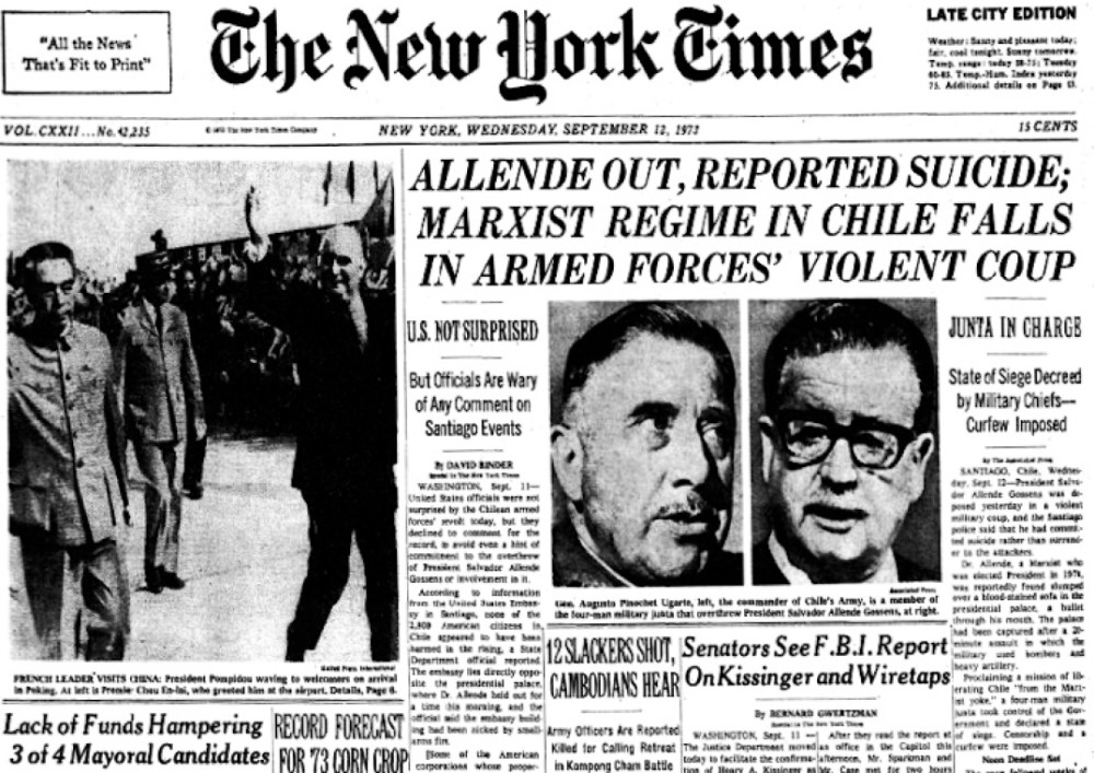 The front page of the New York Times on September 12, 1973. Photo | @OnThisDayNYT