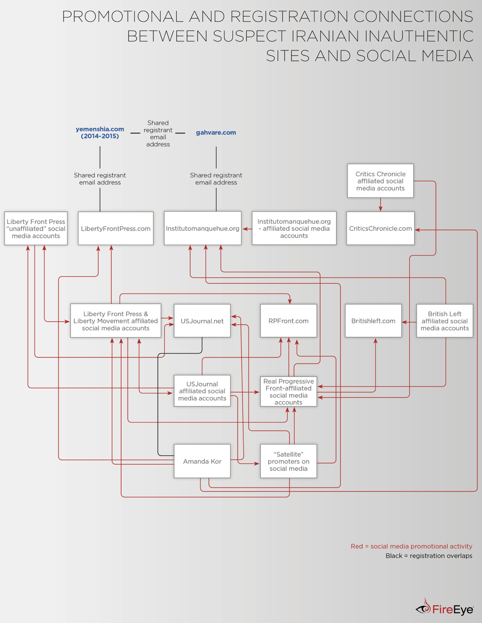 A FireEye graphic purporting to show components of a suspected Iranian influence operation