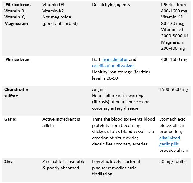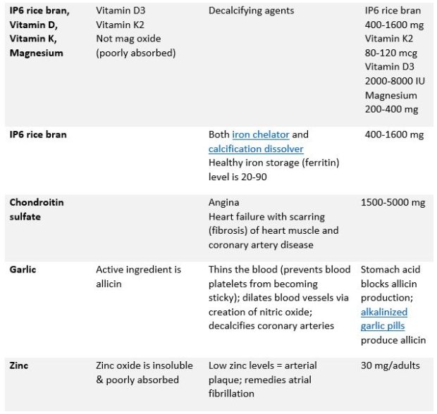 - Prevent or dissolve calcifications that stiffen coronary arteries with Vitamin D, vitamin K, magnesium and IP6 rice bran.