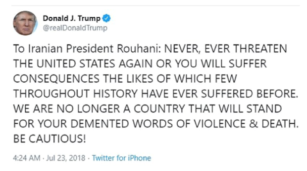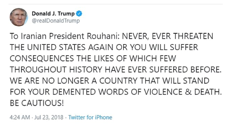 Apparently the drone/missile strike that outed Iranian general Qasem Soleimani on January 3, 2019 was the result of a war-of-words that had been mounting up since the summer of 2018 between this now martyred military leader and U.S. President Donald Trump.