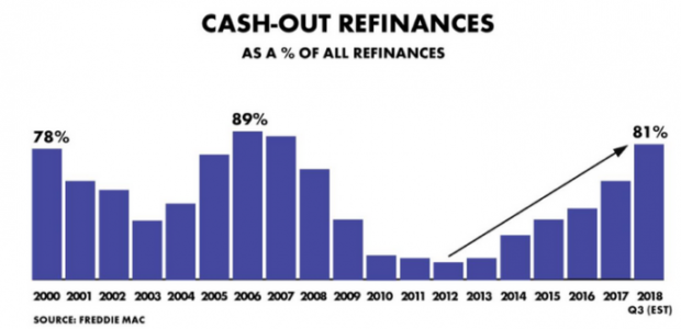 2006 was just insane. 320 billion dollars taken out in cash just in that year, and boy, the debt helped the economy continue, even though things were showing signs of real problems.