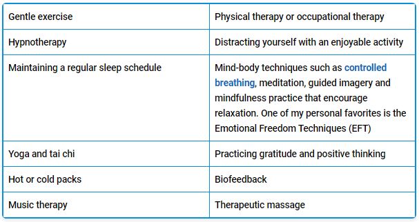 The good news is that many types of pain can be treated entirely without drugs. Recommendations by Harvard Medical School25,26 and the British National Health Service27 include the following. You can find more detailed information about most of these techniques in “13 Mind-Body Techniques That Can Help Ease Pain and Depression.”
