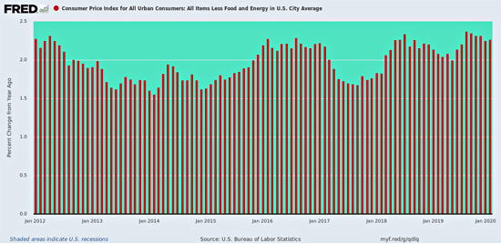 CPI Less Food and Energy, Year-Over-Year Change Since March 2018