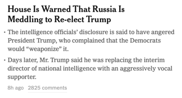 Wow, that’s pretty scary! Except when you consider that Americans have done a crackerjack job of mind-fucking themselves with disinformation the past several years, coincidentally via this very The New York Times, a figment machine so demented that it has come to resemble the proverbial crazy aunt locked in the attic. The true wonder is the Times’ poverty of imagination, reviving a tattered cockamamie story that bombed abjectly the first time around. I suppose, in a culture addicted to stupid sequels, they expect Robert Mueller will be called back on-duty to sort this one out like he did so nicely before.