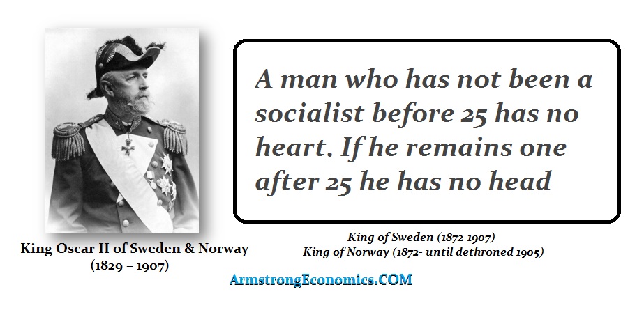 Therefore, my statement that “human nature never changes” does not refer to an individual, for most intelligent people do not believe what they may have believed when they were a teenager. Mark Twain’s famous quote is spot-on: “When I was a boy of 14, my father was so ignorant I could hardly stand to have the old man around. But when I got to be 21, I was astonished at how much the old man had learned in seven years.” There is even the quote of King Oscar II on how we are all socialists before 25 and become realists after 25 when we have to pay taxes.