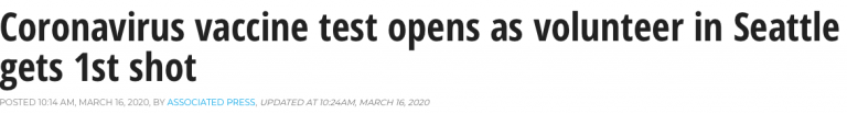 The candidate vaccines will be very, very quick. Dr. Anthony Fauci, director of NIAID [who has been spreading panic on network TV], is out in public as saying he thinks the clinical trial for the Moderna vaccine may be as early as the spring. (emphasis added)