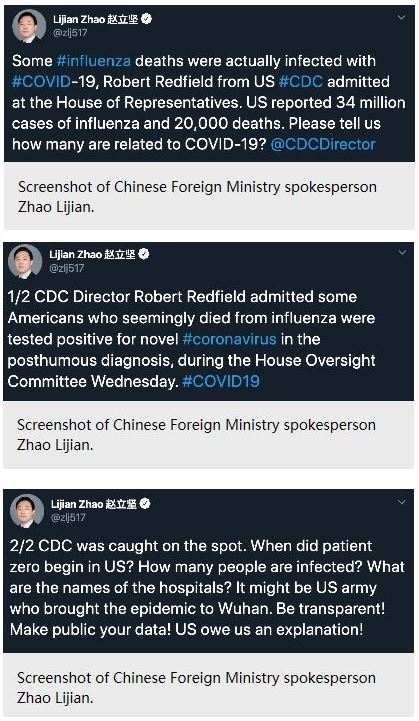 “When Did “Patient Zero” Begin in the US?” said China’s Foreign Ministry spokesperson Zhao Lijian.