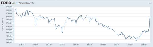 The monetary base, which represents the quantity of money in public circulation created by the Fed, is now growing at the fastest pace on record. But since January, a new problem arose: the disruption to production supply chains from the virtual shutdown of Chinese production due to the coronavirus.
