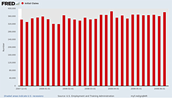 For point of reference, it took fully 28 weeks to generate the same level of cumulative new claims after the beginning of the Great Recession. During that interval, the largest weekly number was 387,000 during the week of March 29, 2008.