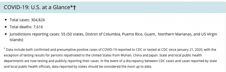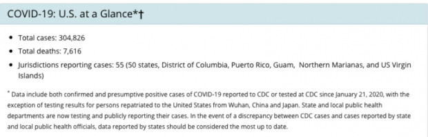 According to the CDC the data presented for the United States “include both “confirmed” and “presumptive” positive cases of COVID-19 reported to CDC or tested at CDC since January 21, 2020″.