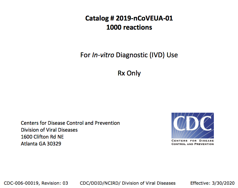 Testing with the CDC 2019-nCoV Real-Time RT-PCR Diagnostic Panel is intended for use by trained laboratory personnel who are proficient in performing real-time RT-PCR assays. The CDC 2019-Novel Coronavirus (2019-nCoV) Real-Time RT-PCR Diagnostic Panel is only for use under a Food and Drug Administration’s Emergency Use Authorization.