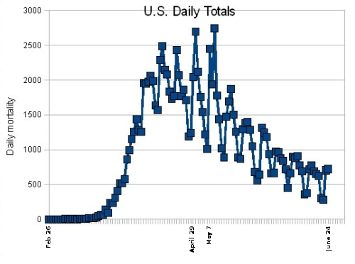 “Across the United States,” reported the Post, “more than 36,000 new infections were reported by state health departments on Wednesday — surpassing the previous single-day record of 34,203 set on April 25.”