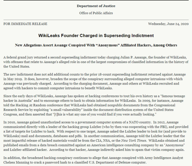 So the prosecution needed a different case. They have therefore entirely changed the indictment against Julian in Virginia, and brought in a superseding indictment.
