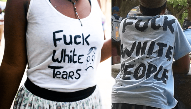 As many have noticed, these Democrat convocations seethe with racism in which participants carry placards with inscriptions such as “F-ck Whiteness” while slogans such as “F-ck White People!” serve as their marching chants.