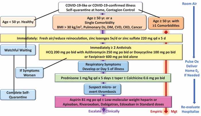 In terms of early drug treatment for patients who are quarantining at home, the authors recommend using a combination of HCQ and zinc lozenges, along with several other drugs (depending on your symptoms).