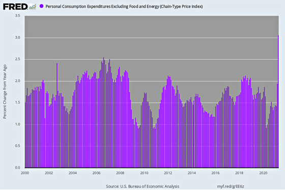 YoY Change In Core PCE Deflator, 2000-2021