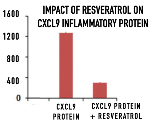 That is because National Institutes of Health (NIH) researchers reported in 2015 that the red wine molecule resveratrol demonstrably inhibits CXCL9 and other CX family inflammatory proteins.
