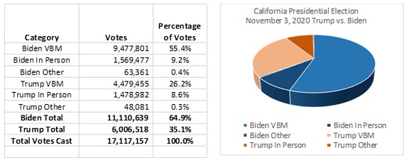 Here are the official presidential totals for California, as released by Dr. Shirley N. Weber, Secretary of State (also released by Alex Padilla, Secretary of State through January 28, 2021):