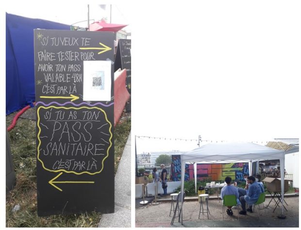 My first surprise was before the official start. I was to meet a couple of Canadian students at one of the few places in Paris where you can have a pitcher of beer, La Javelle along the Seine. I was shocked to see this sign requiring the pass sanitaire, but also note the arrows pointing to a testing station a few meters away. At no cost I had the antigen test performed, received the pass over the phone, and then could enter all in about 15 minutes. The swab up my right nostril made solid contact with my tear duct. I was not feeling hurt, but I was half crying, with tears streaming down my right eye.