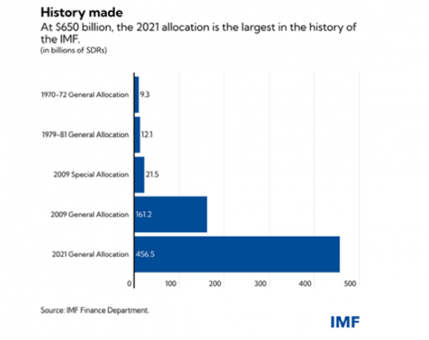 Just one month ago, the IMF’s board of governors approved an allocation (its first since 2009) of Special Drawing Rights (SDR) to the tune of $650B (456B in SDR) in order to stimulate, you guessed it, more global liquidity.