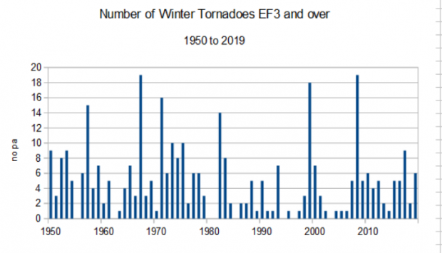 - Extreme weather expert Dr. Roger Pielke, Jr. noted that the UN IPCC report states, “Trends in tornadoes… associated w/ severe convective storms are not robustly detected … attribution of certain classes of extreme weather (e.g. tornadoes) is beyond current modeling and theoretical capabilities.”
