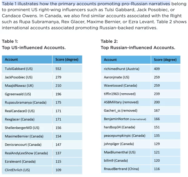 A section from the briefing paper that describes Levant and others as “accounts promoting pro-Russian narratives.”