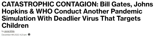 In the latest Globopsycho bioterror play date they called Catastrophic Contagion which they performed publicly on October 23rd of this year, the actors included the usual suspects, John Hopkins Center for Health Security, The Gates Foundation, and the WHO, a Gates-controlled organization that will have 196 nations under its full control when the WHO Pandemic Treaty goes into effect in May of 2024.