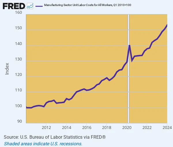 Index of US Manufacturing Unit Labor Costs Since 2010