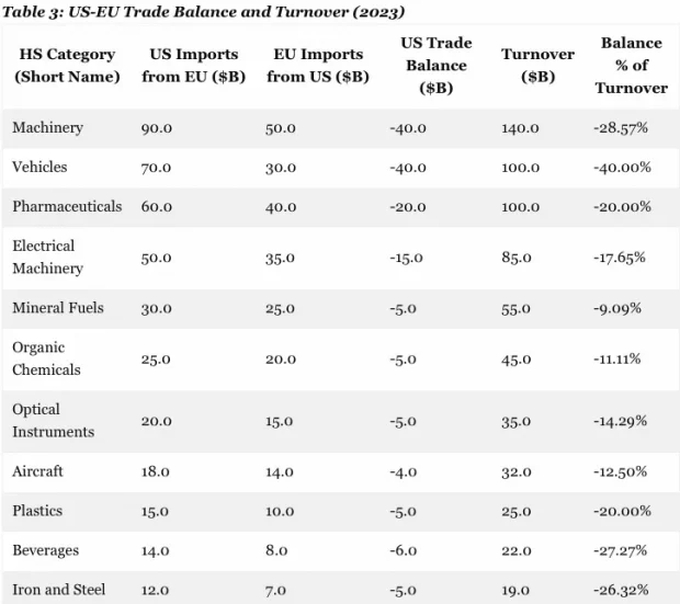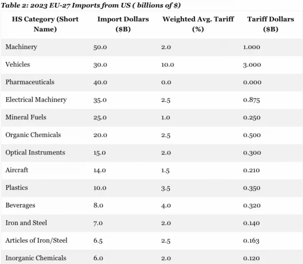 Table 1: 2023 US Imports from EU-27 ($ in billions)