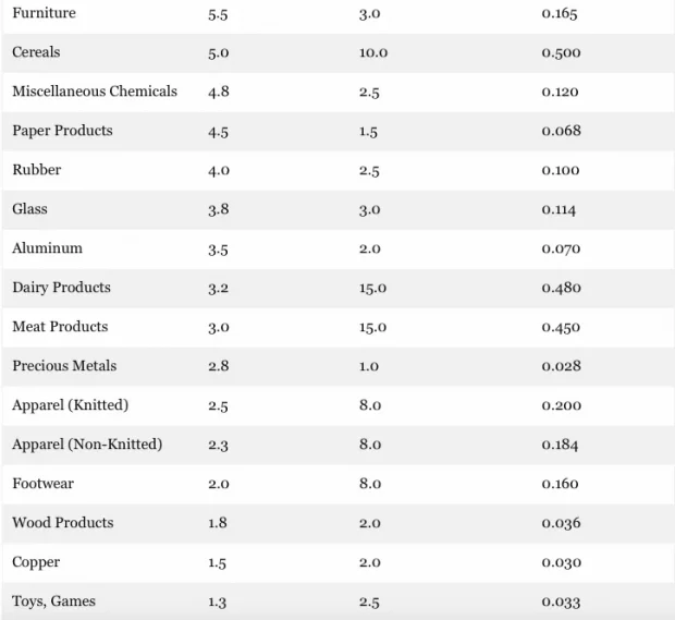 Moreover, when you look at the individual categories, the story is even more unequivocal. For instance, the US had a $40 billion trade deficit with the EU on nonelectrical machinery alone, which amounted to nearly 29% of total turnover on this commodity group. But the EU tariff on nonelectrical machinery is just 1.00% versus the slightly higher US tariff of 2.25%. Again, our tariff is bigger than theirs, but both are so small as to amount to hardly detectable friction in this trading category.