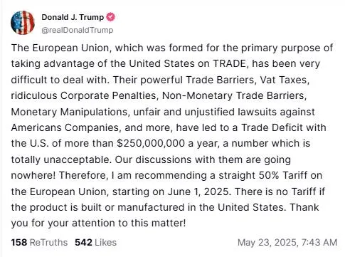In fact, recent press reports from a wide range of sources indicate the the talks with Europe have produced virtually no progress. So the Donald let loose on Truth Social: