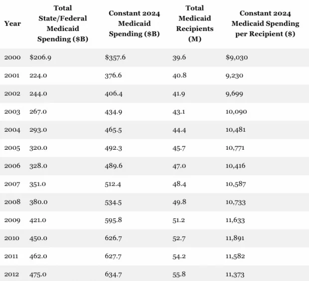 Total Federal/State Medicaid Spending and Recipients, 2000–2024