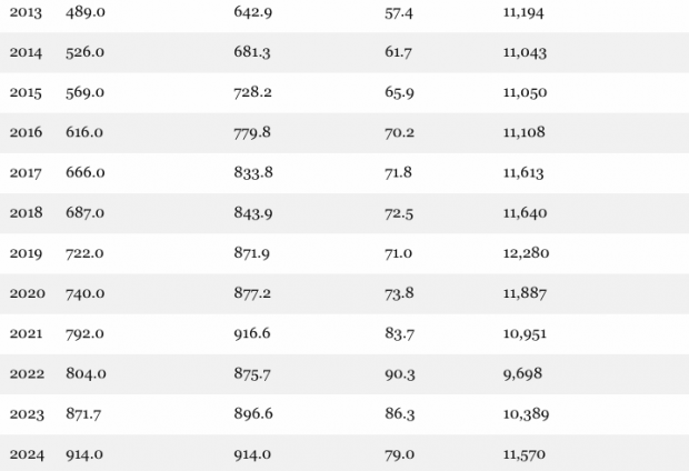 Indeed, with 87% of operating cash flows being devoted to dividends and stock buybacks during 2018-2023, there was only $1.161 trillion left for net investment on main street. That compared to the 76% shareholder return ratio during the six years before the Trump tax cut, which had left $1.673 trillion for net investment on main street.