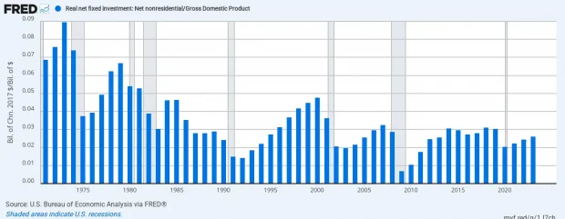 Business CapEx (nonresidential fixed investment) As % Of GDP, 1971 to 2023