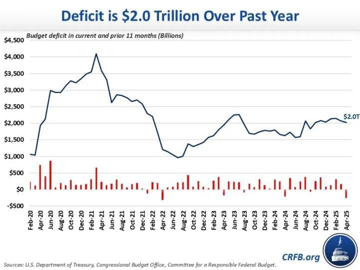 As a result, the 12-month rolling deficit total is back above the $2 trillion level, and will be headed sharply higher if the GOP Congressional majorities can manage to confect a big beautiful reconciliation bill that buries the nation in upwards of $30 trillion of additional public debt over the decade ahead.