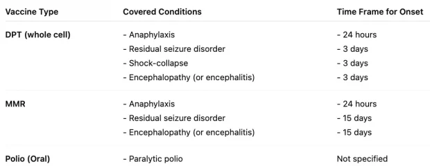 Remarkably, despite twelve new vaccines and decades of science since 1986, almost no additional neurological injuries have been added to the table (as there is a massive conflict of interest in acknowledging the injury and thus the government having to pay for it).