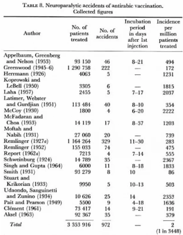It was difficult to find a vaccine dose strong enough to prevent rabies but weak enough not to cause paralysis. Rabies vaccine injuries averaged a 10-16.85% fatality rate and were one of four types: